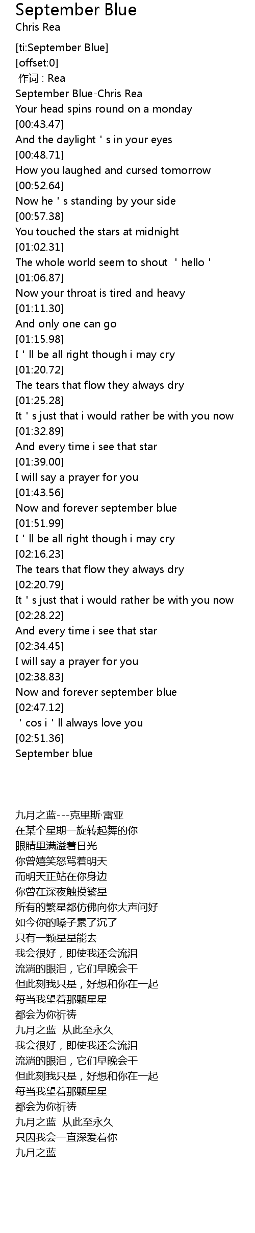 | [01:44.31] | Now and forever september blue |