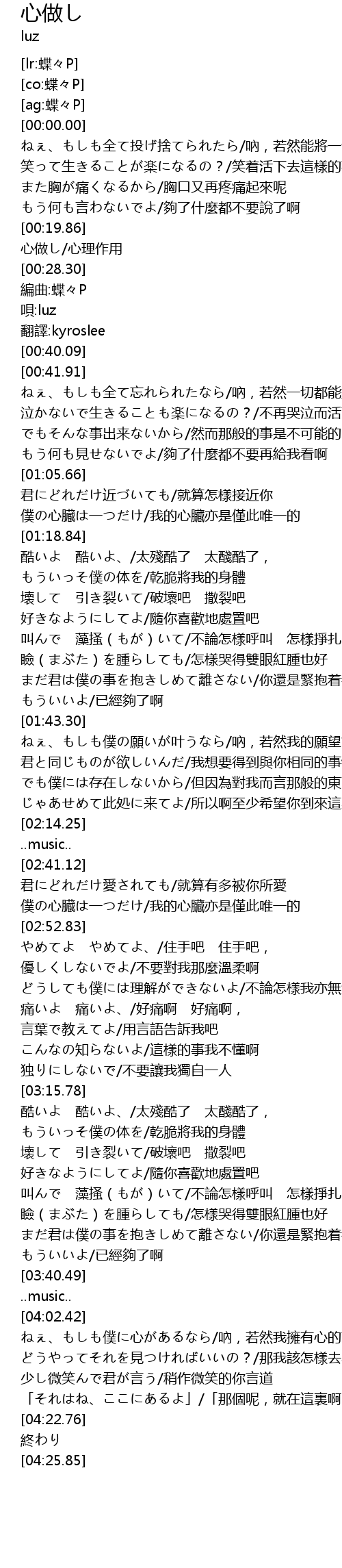 | [00:22.94] | 心做し/心理作用 |