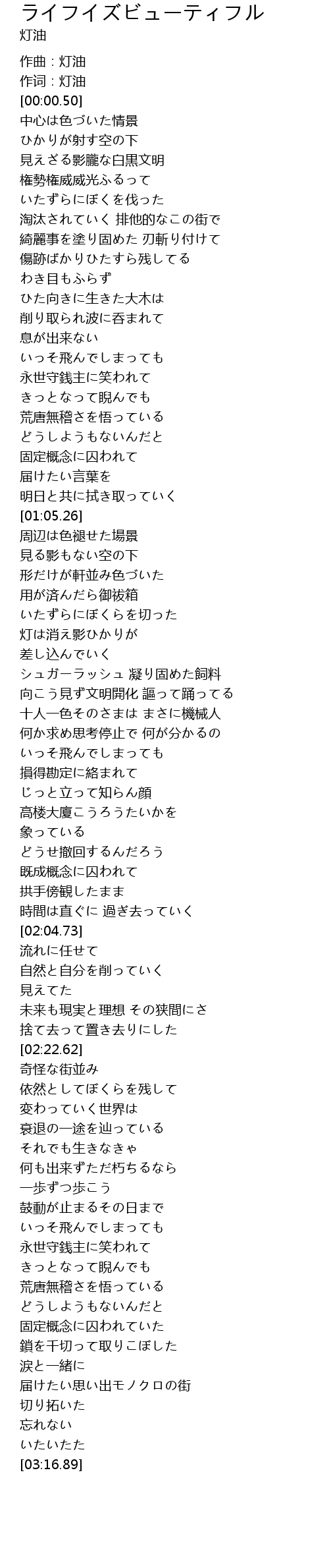 | [00:29.33] | 淘汰されていく 排他的なこの街で |