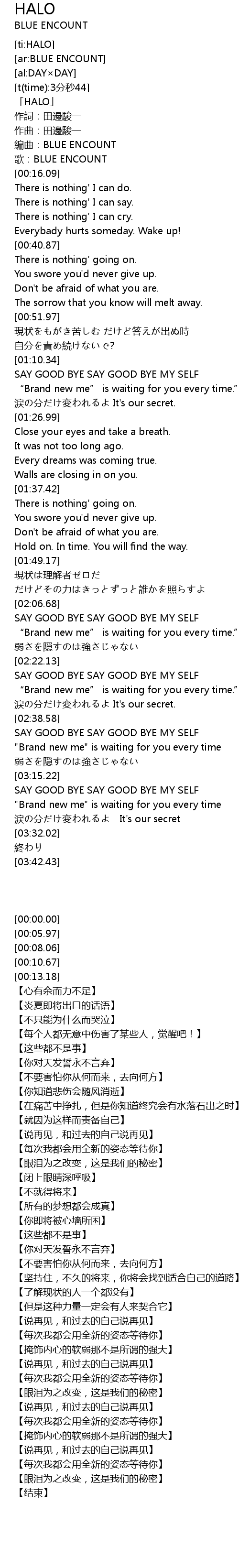 | [00:00.00] | 「HALO」 |