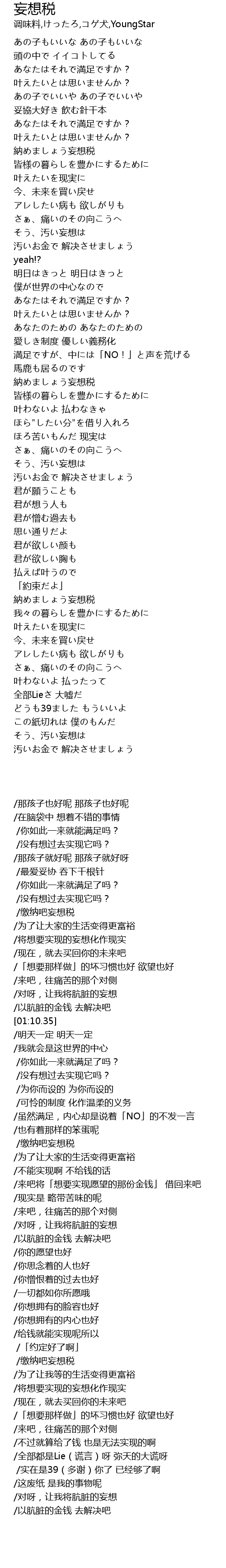 | [01:47.59] | 納めましょう妄想税 |