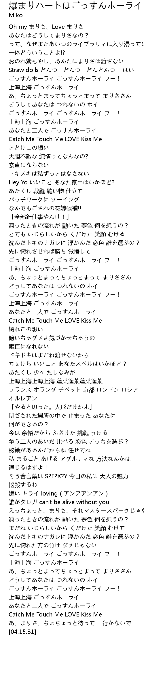 | [04:06.89] | Catch Me Touch Me LOVE Kiss Me |