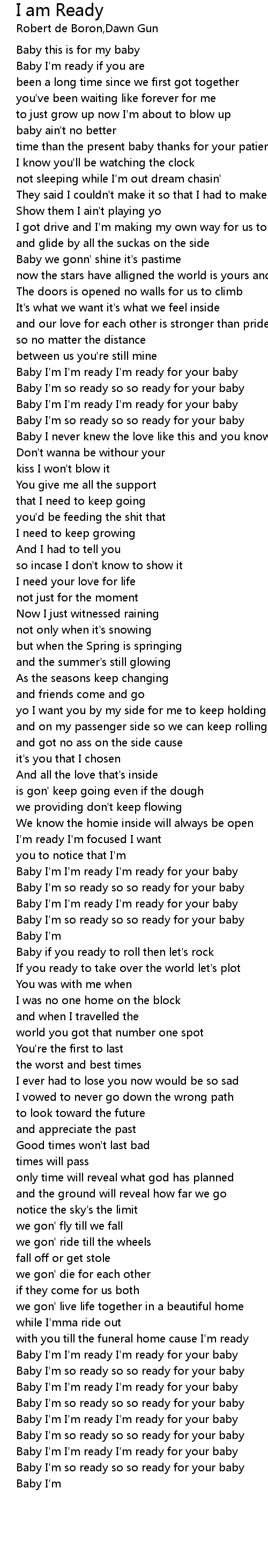 Baby I'm I'm ready I'm ready for your baby |