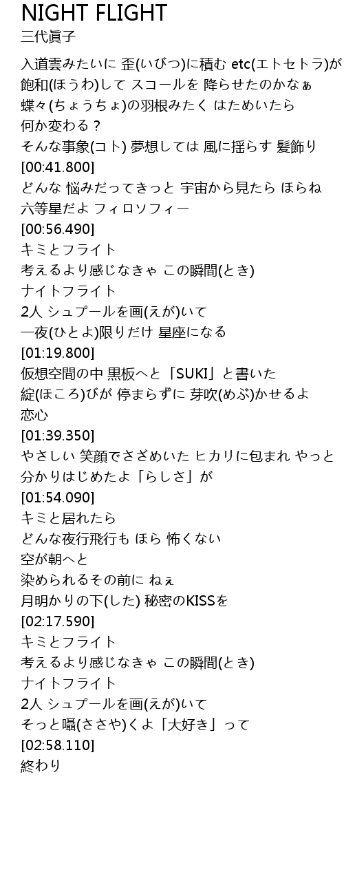 | [02:42.470] | ナイトフライト |