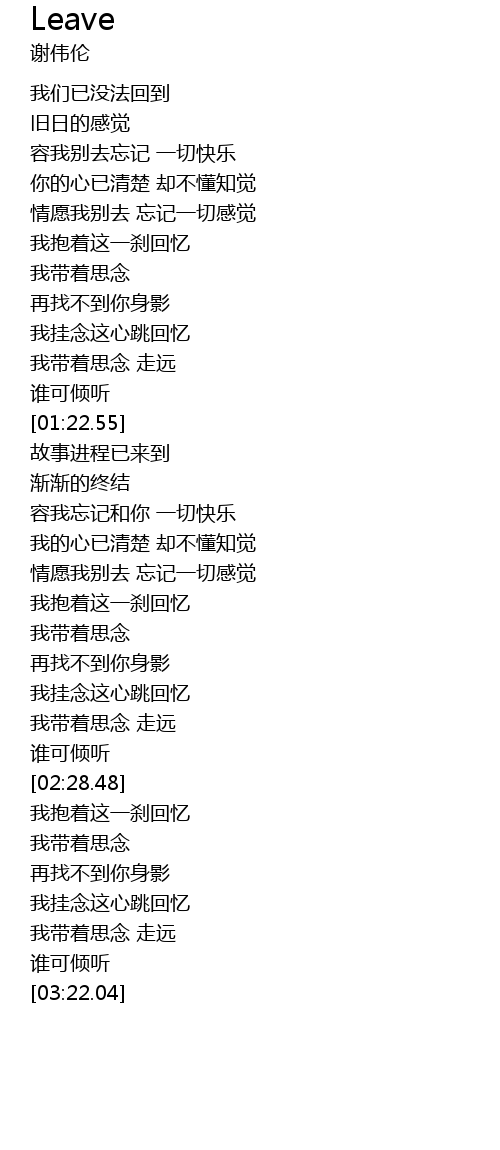 | [01:40.70] | 容我忘记和你 一切快乐 |