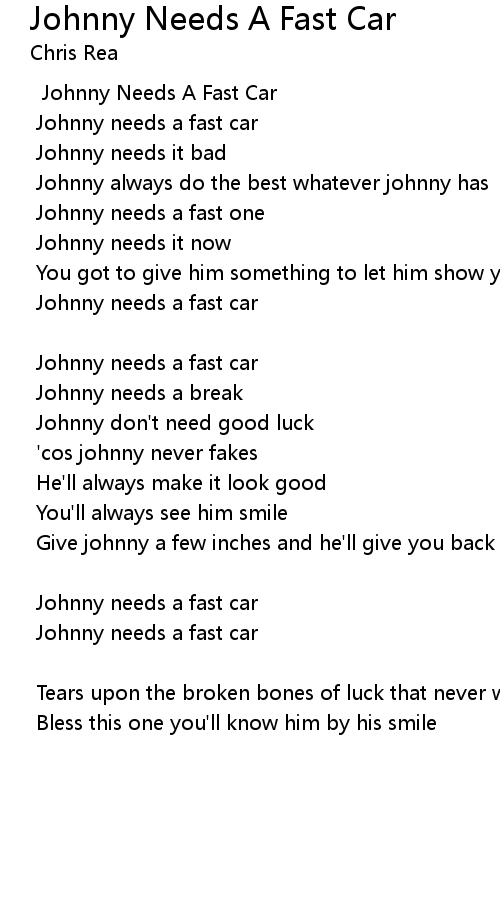 Johnny Needs A Fast Car |