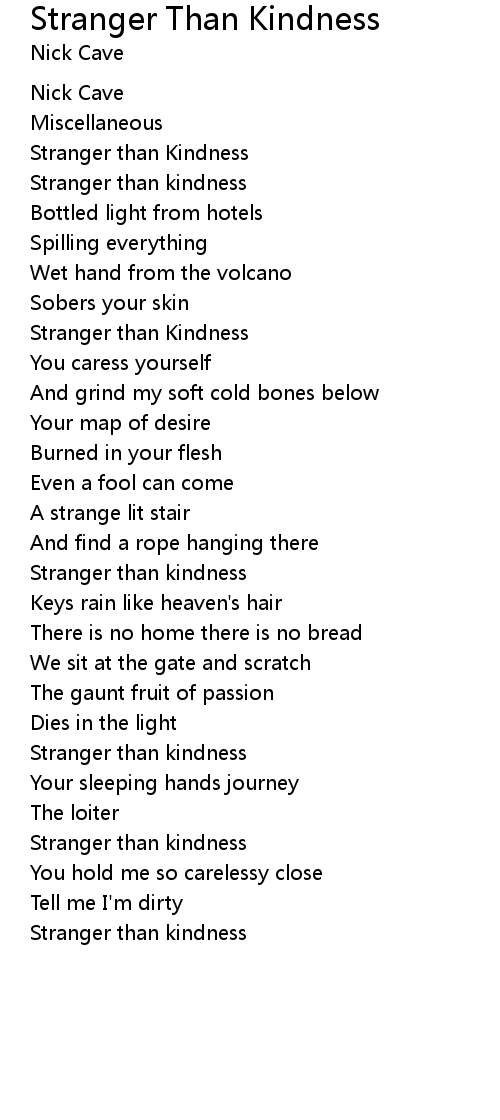 Stranger than kindness |
