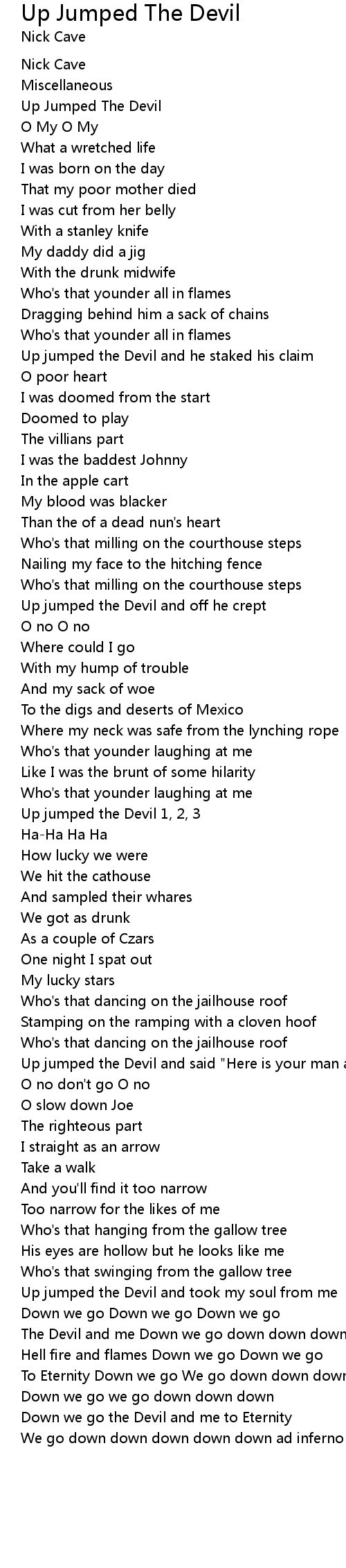 Up jumped the Devil and said "Here is your man and I got a proof" |