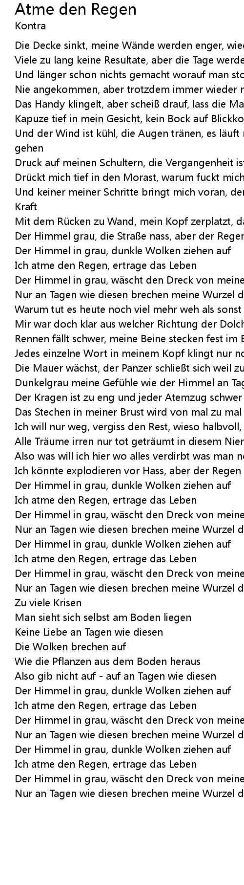 | Song | Atme den Regen |