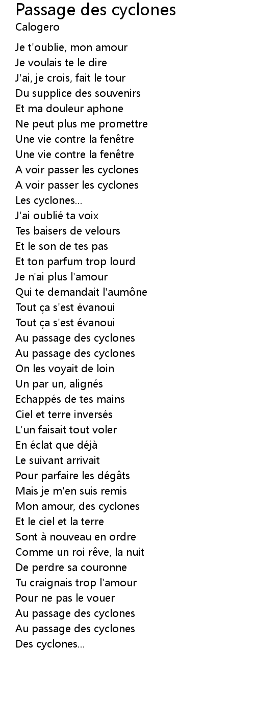 | Song | Passage des cyclones |
