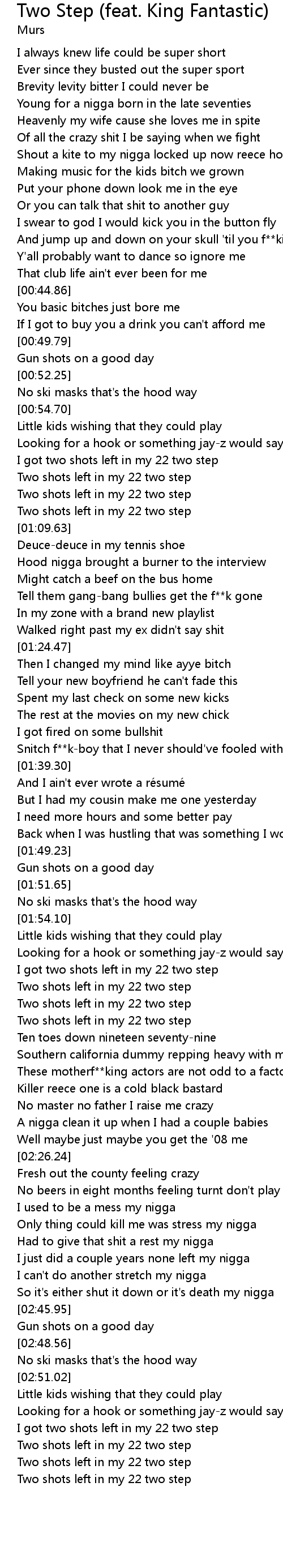 | [02:36.42] | Had to give that shit a rest my nigga |