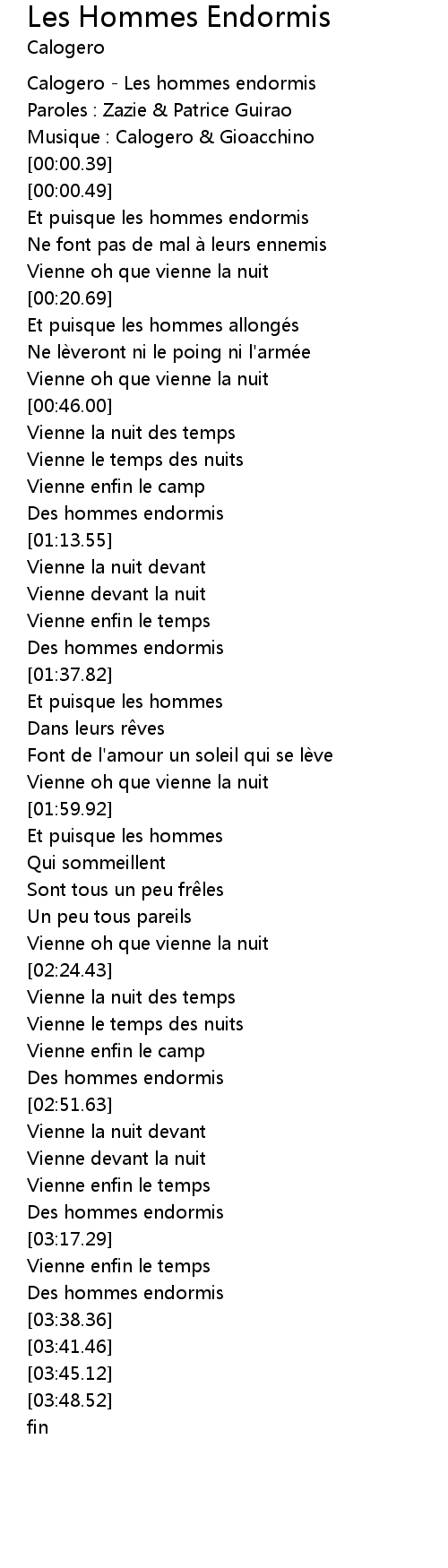 | [00:00.29] | Musique : Calogero & Gioacchino |
