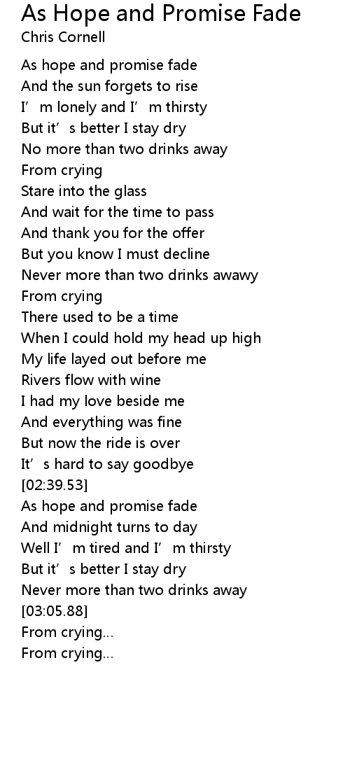 | [02:58.32] | Well I’m tired and I’m thirsty |