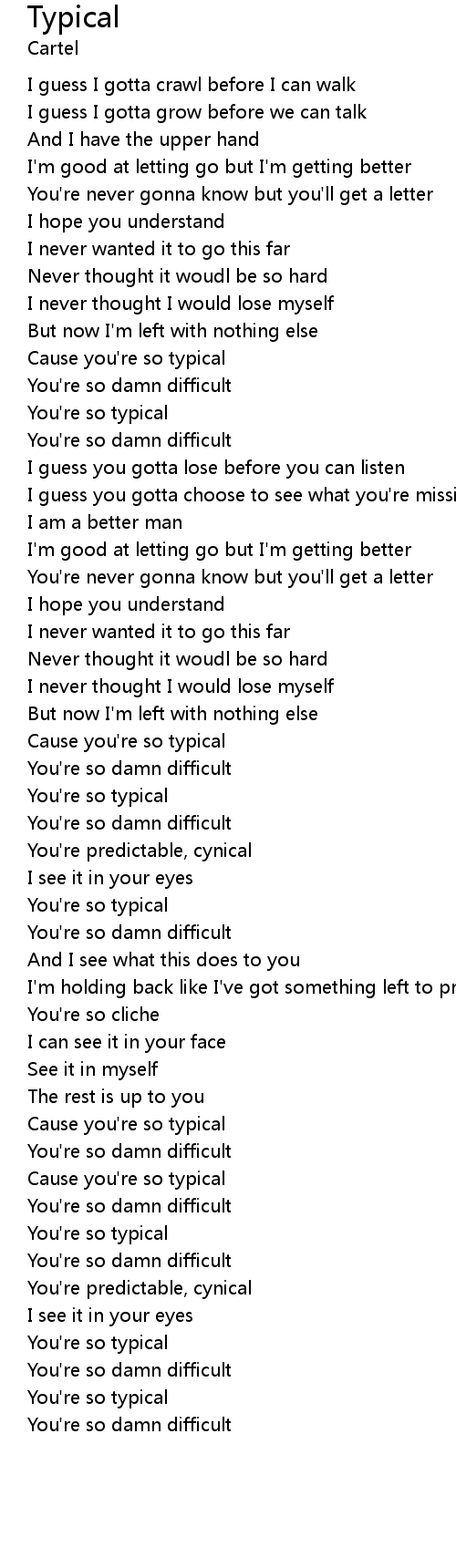 | Cause you're so typical | |