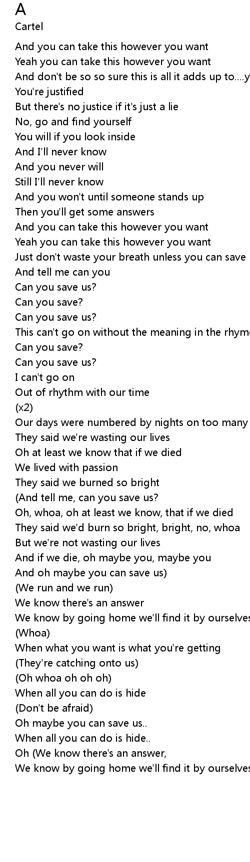 | And oh maybe you can save us) | |