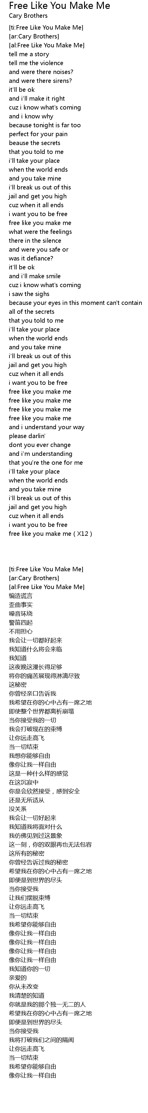 | [ti:Free Like You Make Me] | |