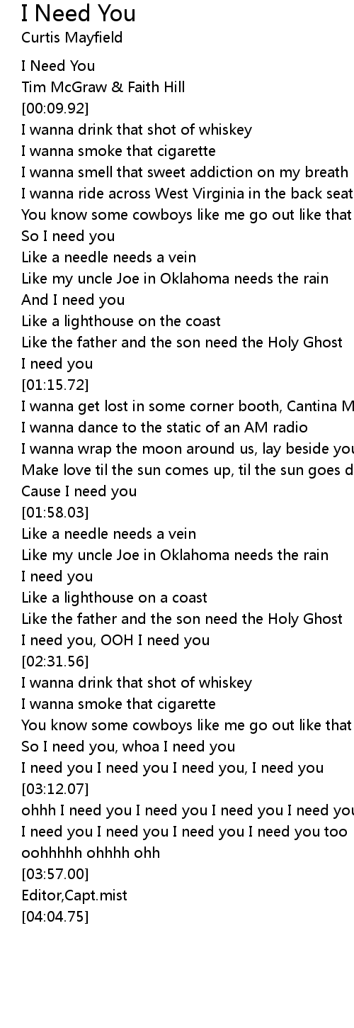 I Need You Lyrics