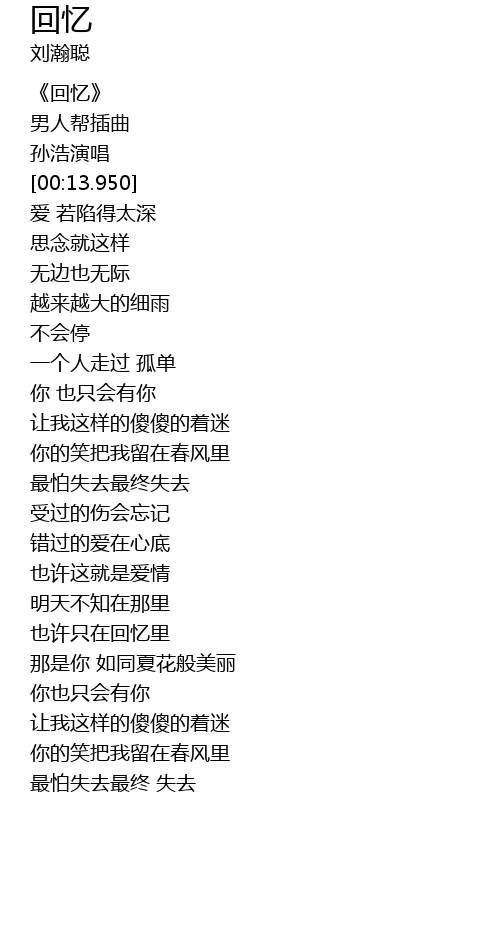 | [00:04.330] | 《回忆》 |