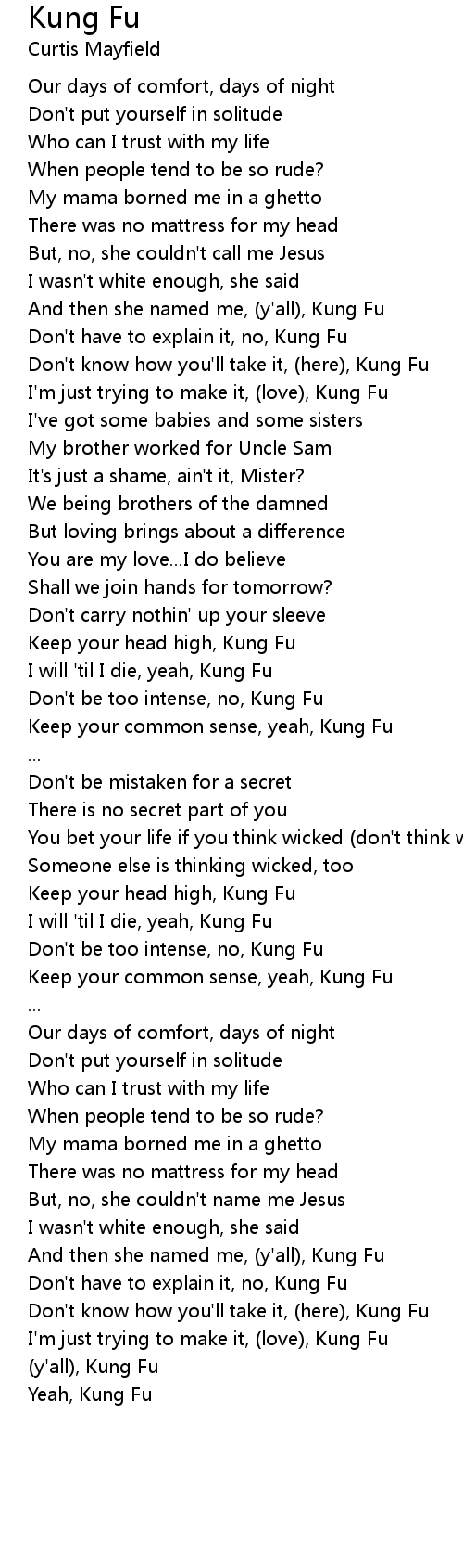 Don't know how you'll take it, (here), Kung Fu |