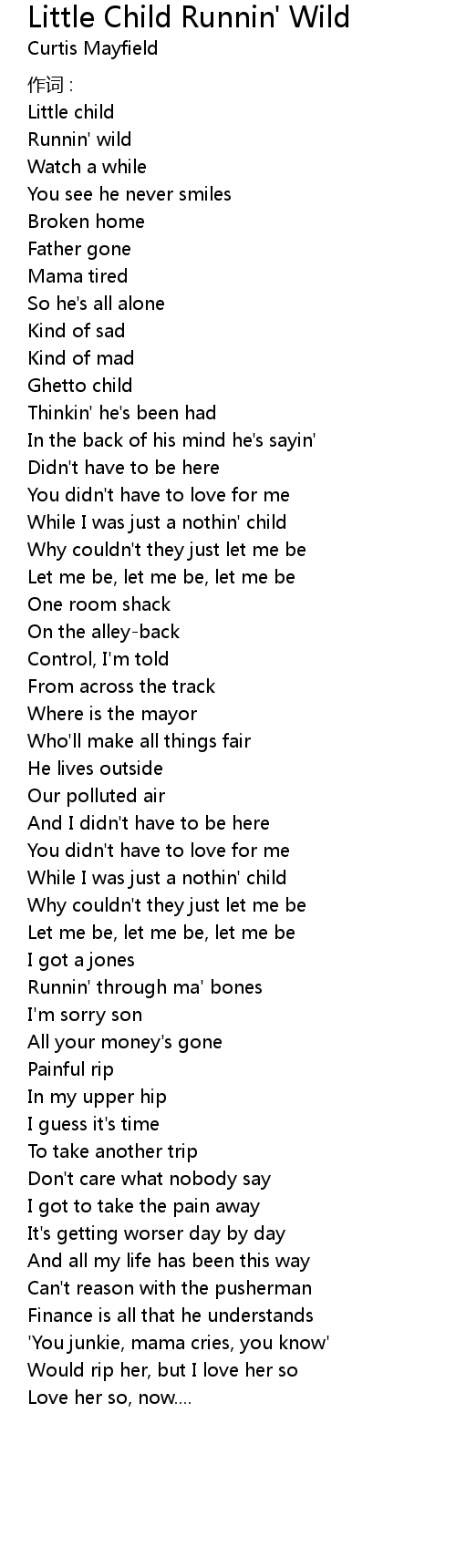 | Song | Little Child Runnin' Wild |