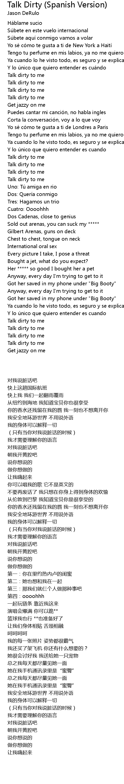 | Song | Talk Dirty (Spanish Version) |