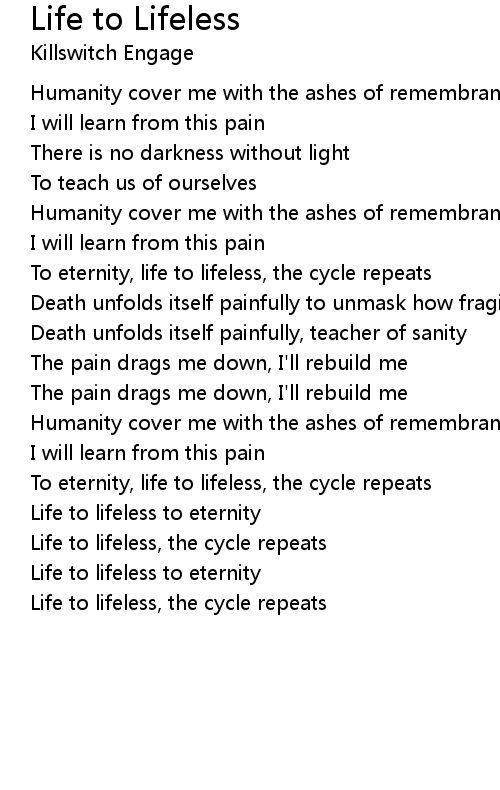 Life to lifeless, the cycle repeats |