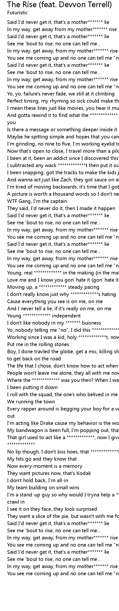 See me 'bout to rise, no one can tell me... |