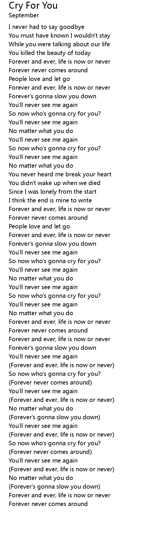 So now who's gonna cry for you? |