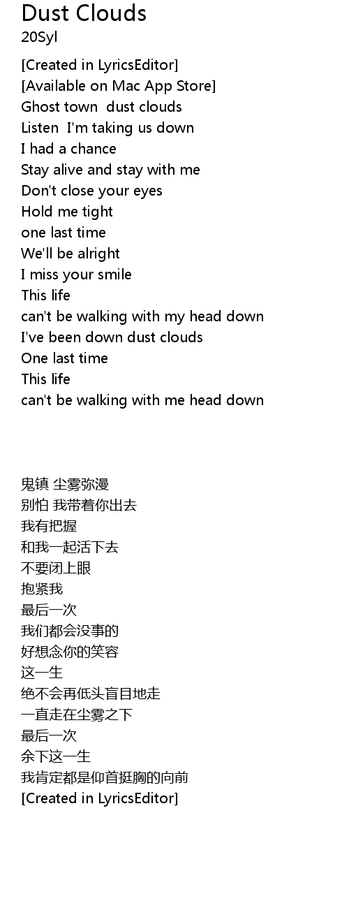 | [02:33.924] | I've been down dust clouds |