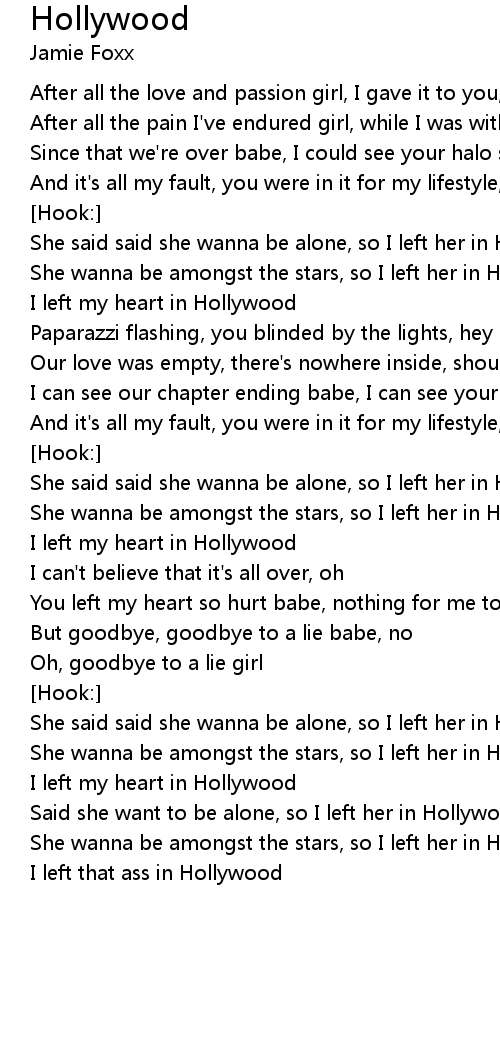 She wanna be amongst the stars, so I left her in Hollywood, oh