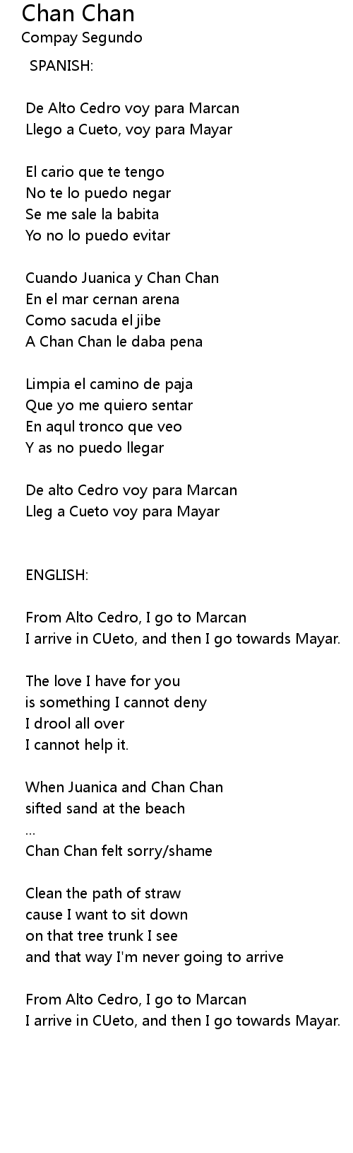 Chan Chan Lyrics