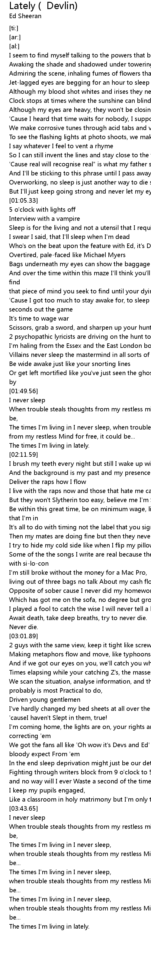 The times I'm living in I never sleep, when trouble steals thoughts |