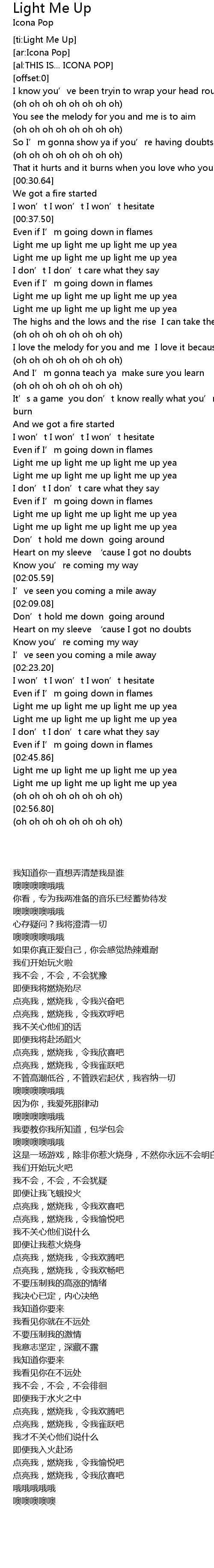 | [00:41.31] | Light me up light me up light me up yea |