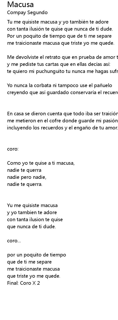 | Tu me quisiste macusa y yo tambie n te adore | |