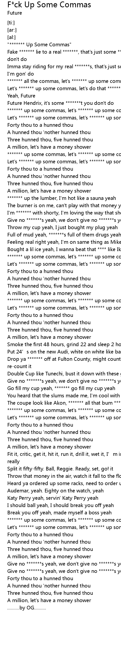 | [00:41.74] | ******* up some commas, let's ******* up some commas yeah |