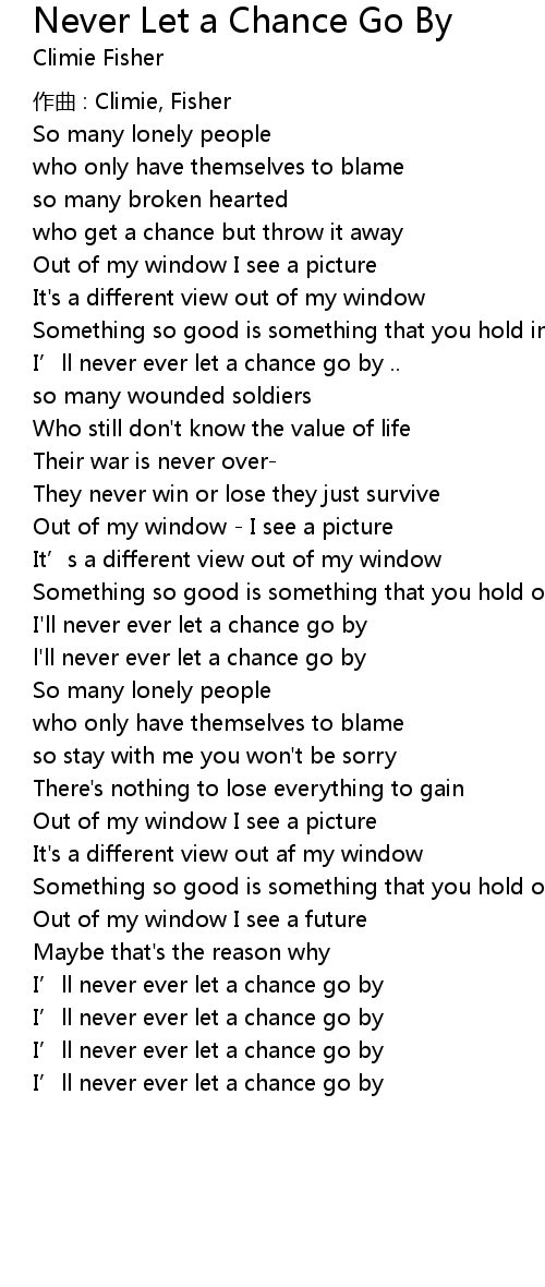 | l' ll never ever let a chance go by | |