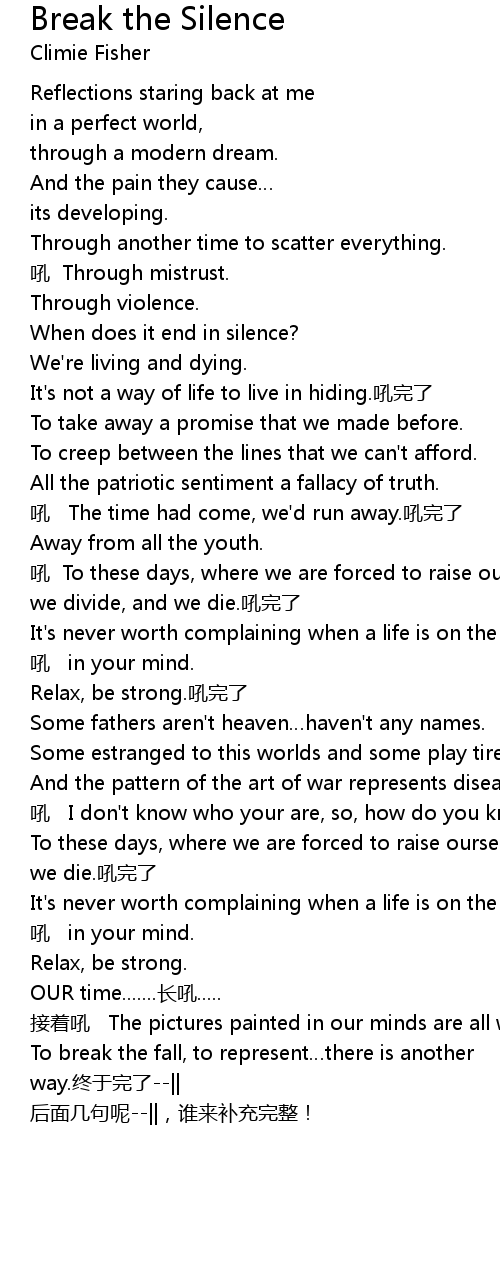 | Song | Break the Silence |