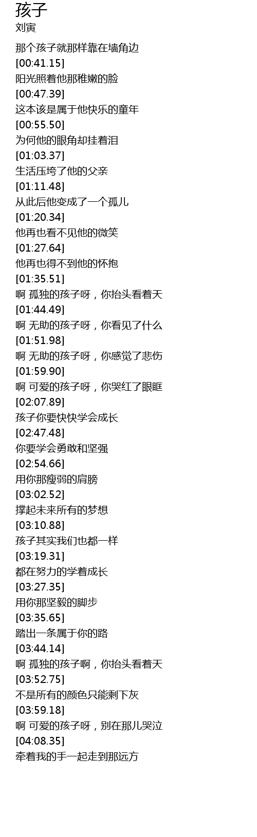| [03:45.95] | 啊 孤独的孩子啊,你抬头看着天 |