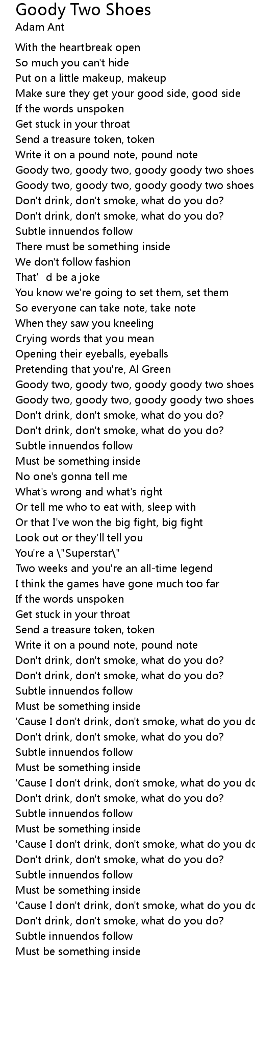 | Goody two, goody two, goody goody two shoes | |