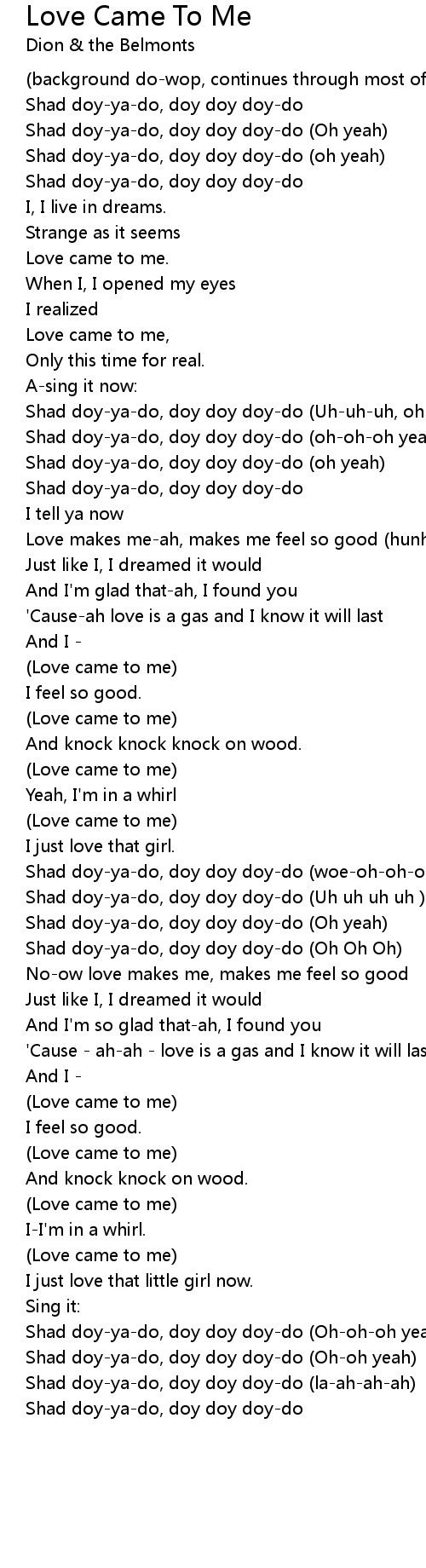 Love came to me, |