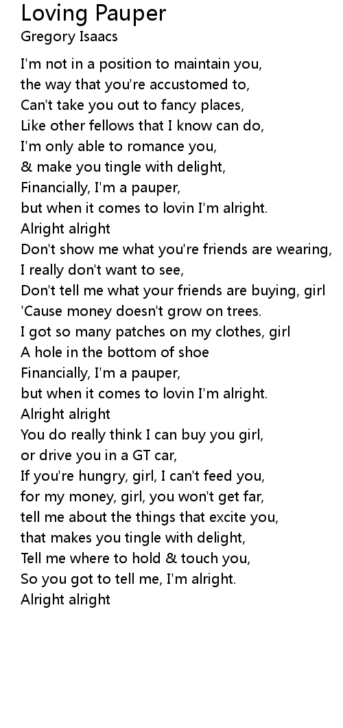 Financially, I'm a pauper, |