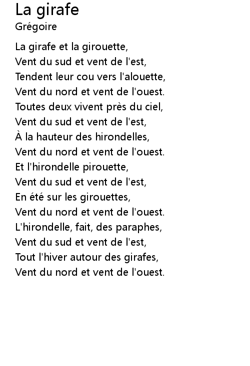 | Song | La girafe |