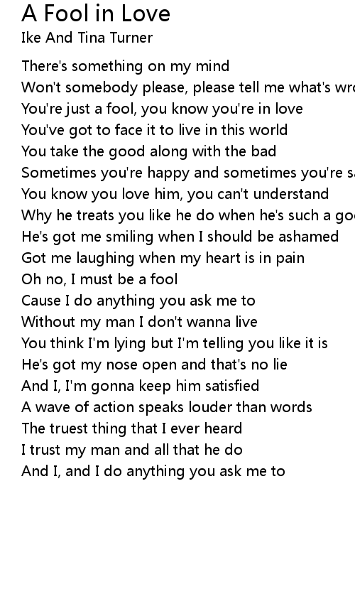 You're just a fool, you know you're in love |