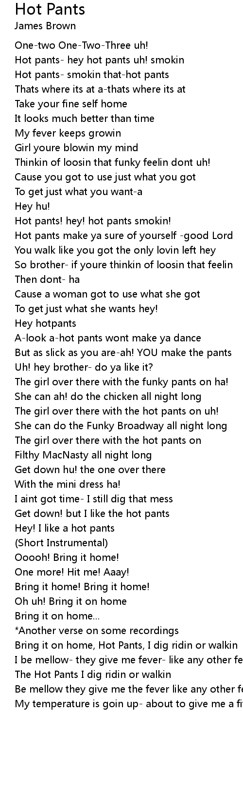 Bring it on home, Hot Pants, I dig ridin or walkin |
