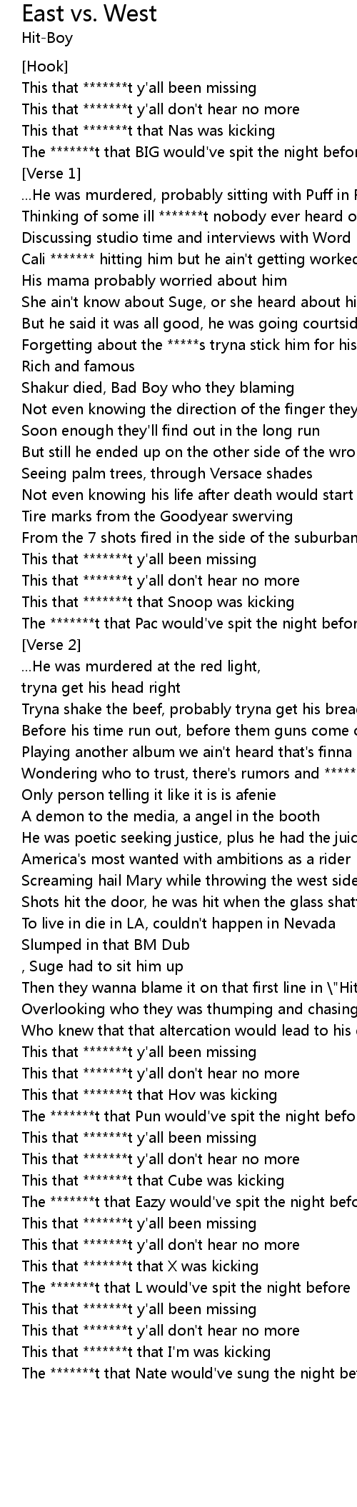 | The *******t that Eazy would've spit the night before | |