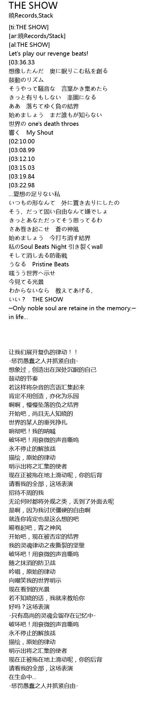 | [01:20.36][03:22.98] | si quan jian THE SHOW |