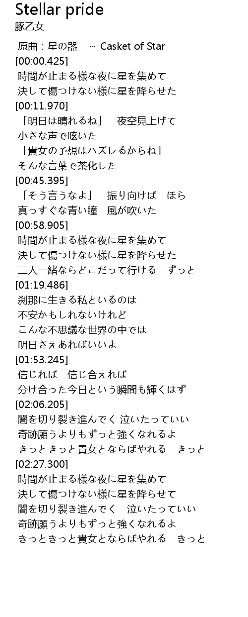 | [00:00.150] | 原曲:星の器 ~ Casket of Star |