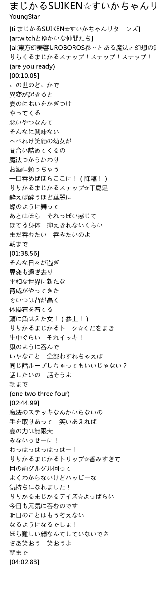 | [03:31.37] | りりかるまじかるデイズ☆よっぱらい |