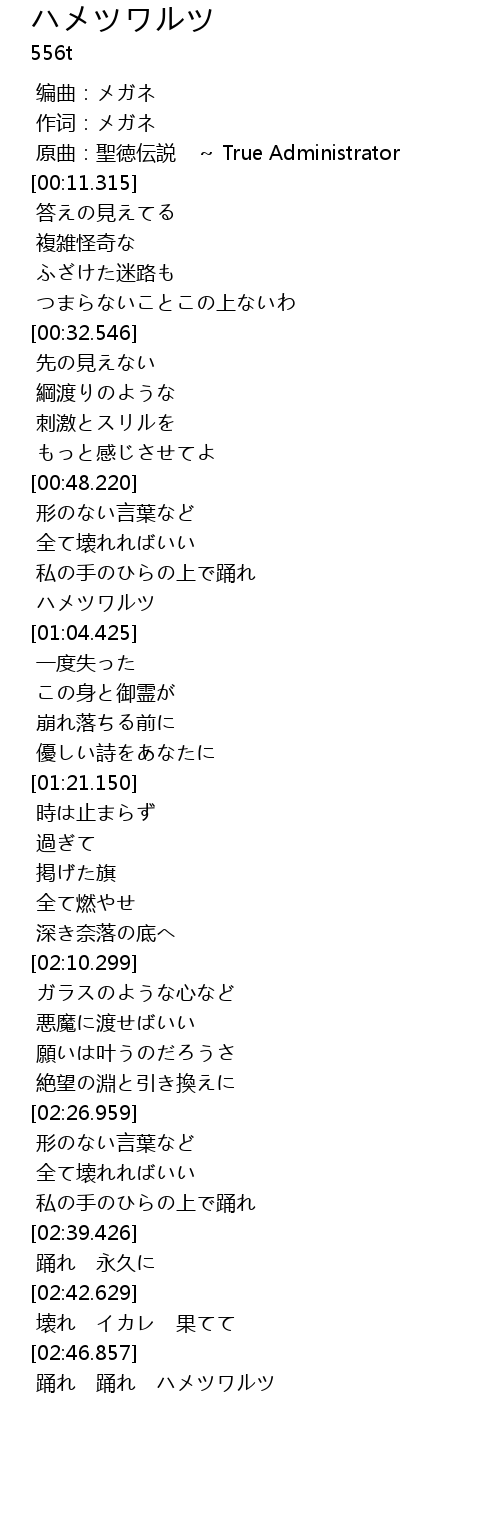 | [01:02.493] | ハメツワルツ |
