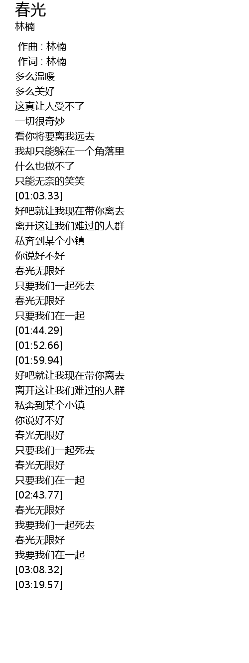 | [00:00.00] | 作曲 : 林楠 |